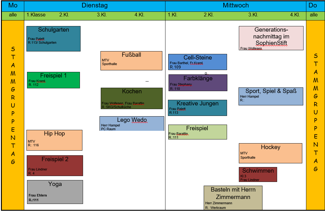 1. Schultag: 2. Klassen 1.-4. Std / 3-4. Klassen 1.-5. Std. |