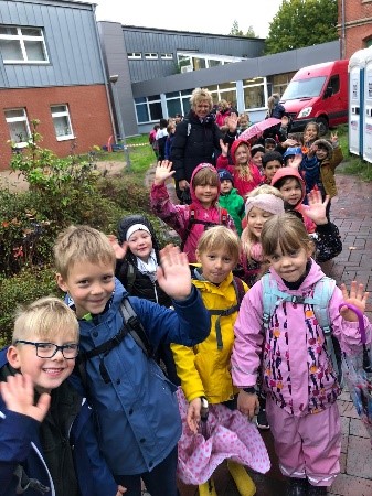Große Aufregung herrschte am Morgen unseres großen Schulausfluges in den Wildpark Nindorf. Dauerregen und 11 Grad konnten uns aber nicht aufhalten. Wir hatten diese Tage durch Corona so vermisst, dass die Sonne im Herzen reichte. Feste Schuhe, ein gut gefüllter Rucksack mit Proviant und Regenjacken waren wichtig – nicht Stift, Buch und Arbeitsblatt!
