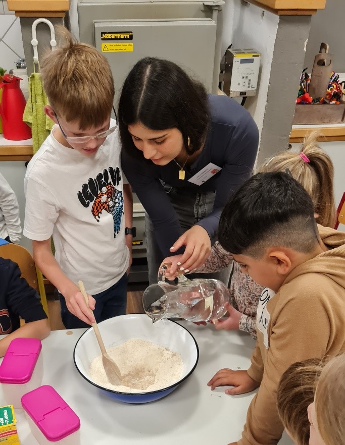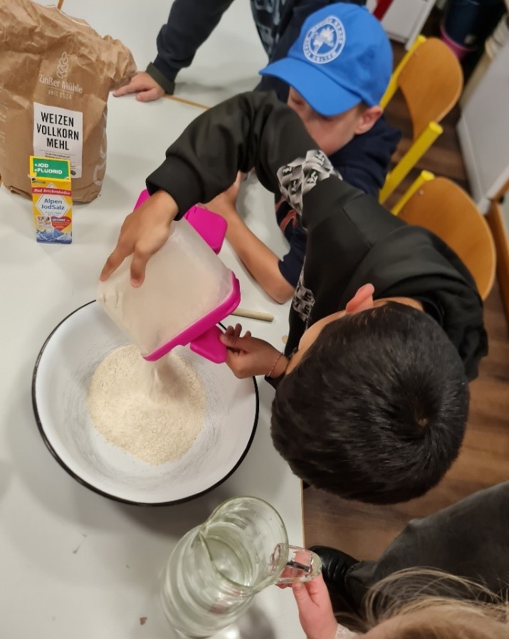 In Zusammenhang mit dem Thema „Vom Getreide zum Korn“ besuchte unser 3. Jahrgang im September das Bomann Museum. Eine Museumspädagogin erklärte den Kindern anschaulich wie die Menschen früher lebten und wie mühselig die Beschaffung und Herstellung von Lebensmitteln war. Eine Vorstellung dessen gewannen die Schülerinnen und Schüler durch die Herstellung von Mehl und das Backen kleiner Brote, das im Anschluss verzehrt werden durfte. Mmm, lecker!