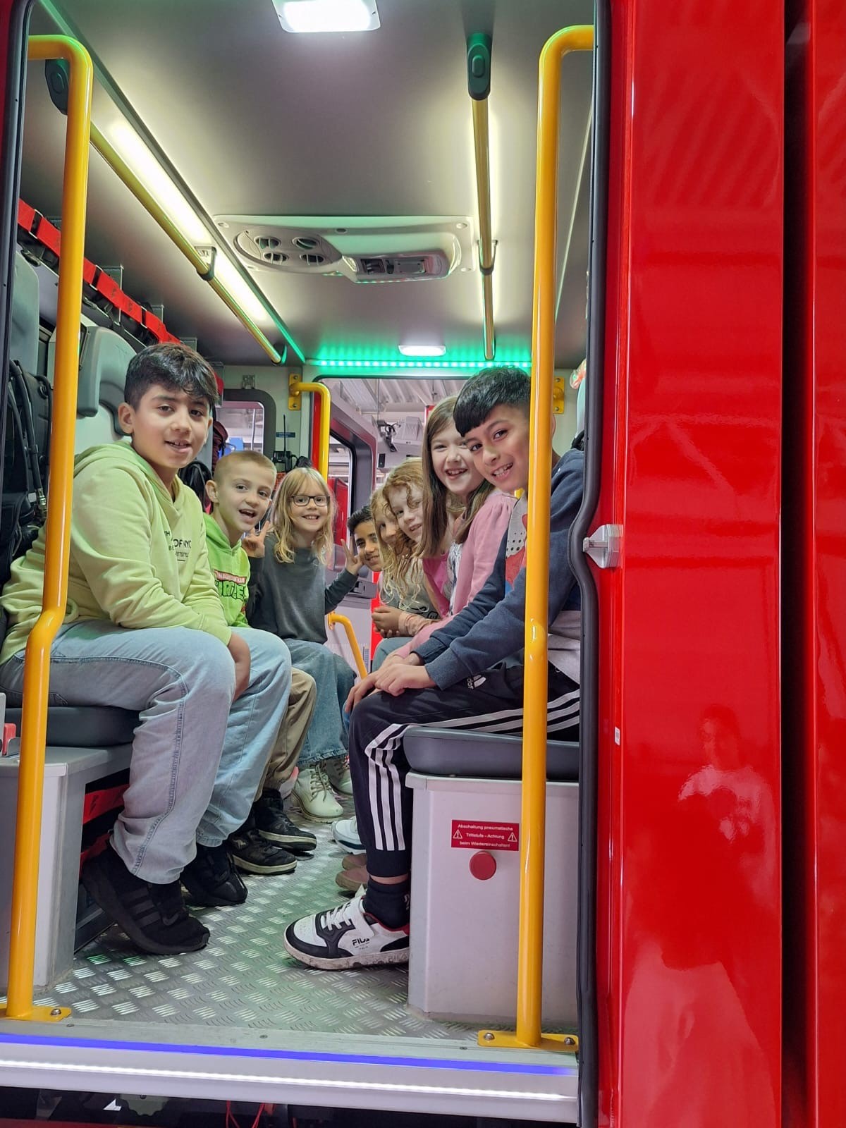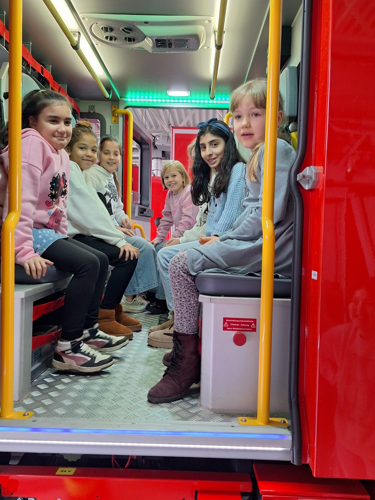 Am 21.10. sowie am 28.10.2024 durften die Klassen 3a, 3b und 3c die Freiwillige Feuerwehr in Celle besuchen. Die Kinder konnten in der Feuerwache die Ausrüstung eines Feuerwehrmanns und die Ausstattung der Löschfahrzeuge genau unter die Lupe nehmen. Besonders aufregend war es, einmal in einem echten Feuerwehrwagen zu sitzen. Nun werden alle ihr Wissen im Rahmen der Unterrichtseinheit „Feuer und Feuerwehr“ vertiefen und auch einen Streichholzführerschein erwerben.