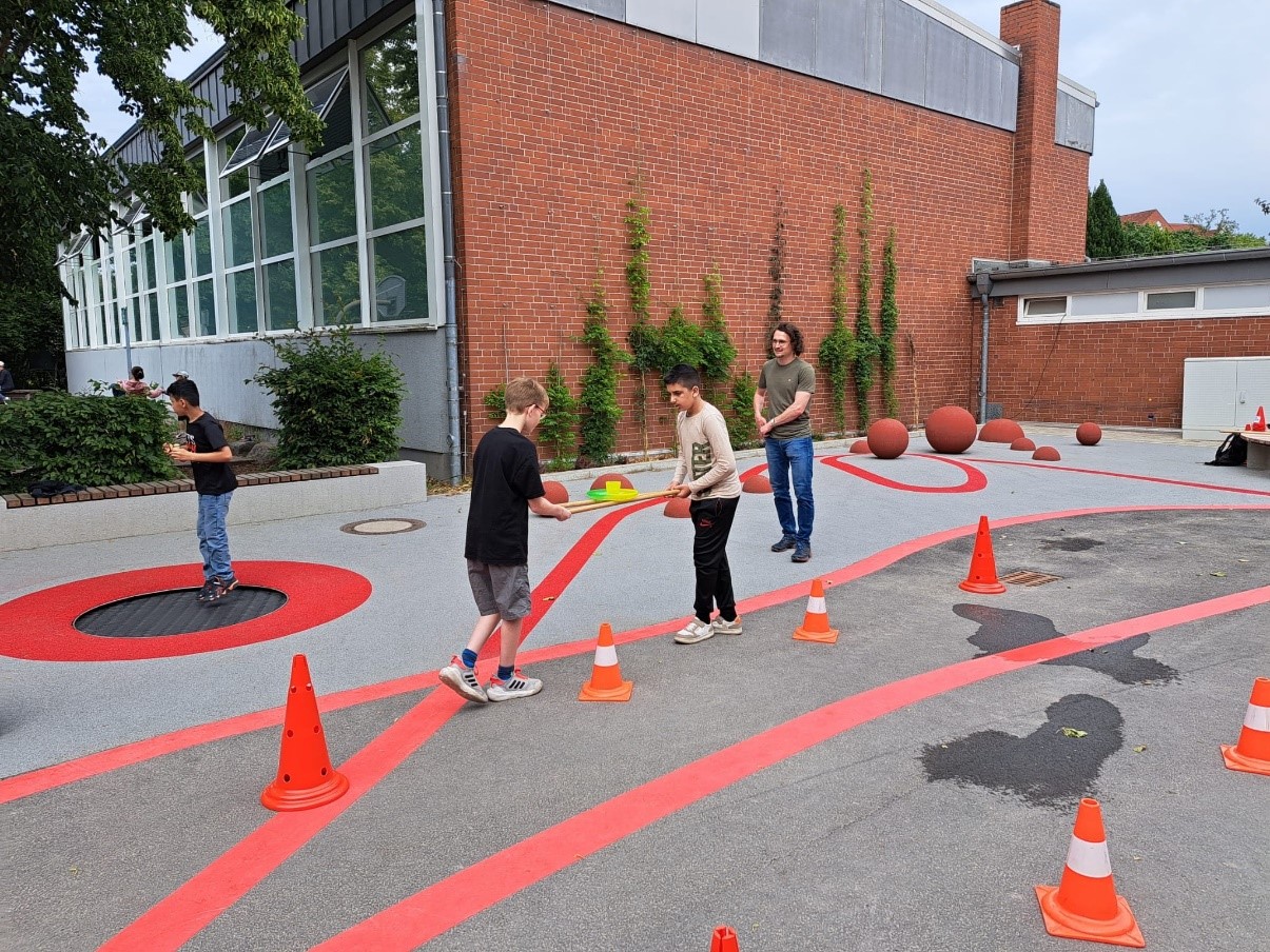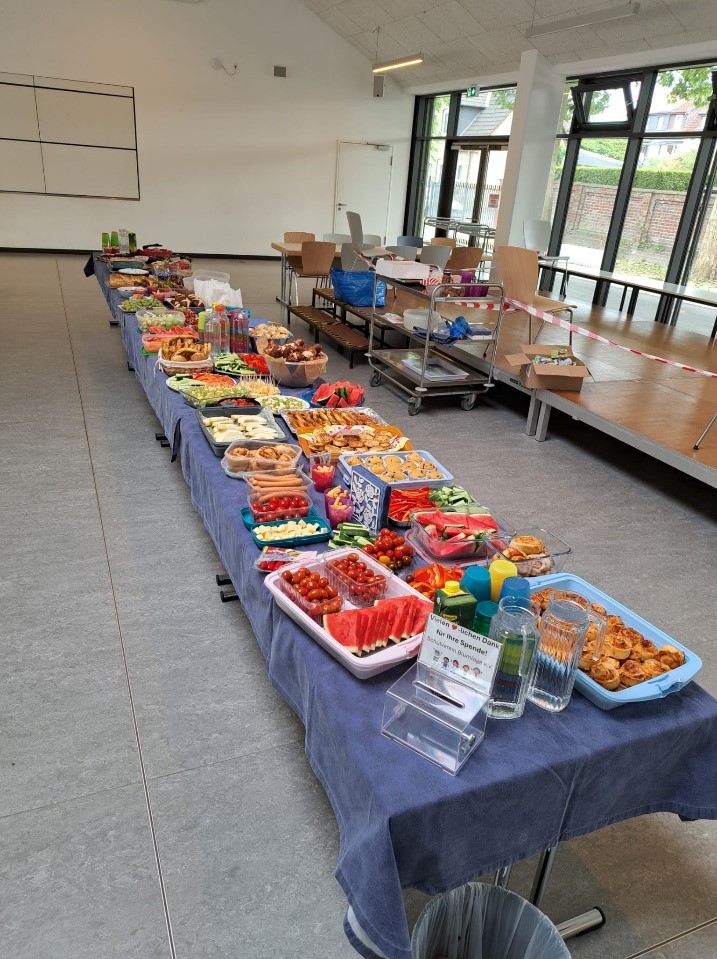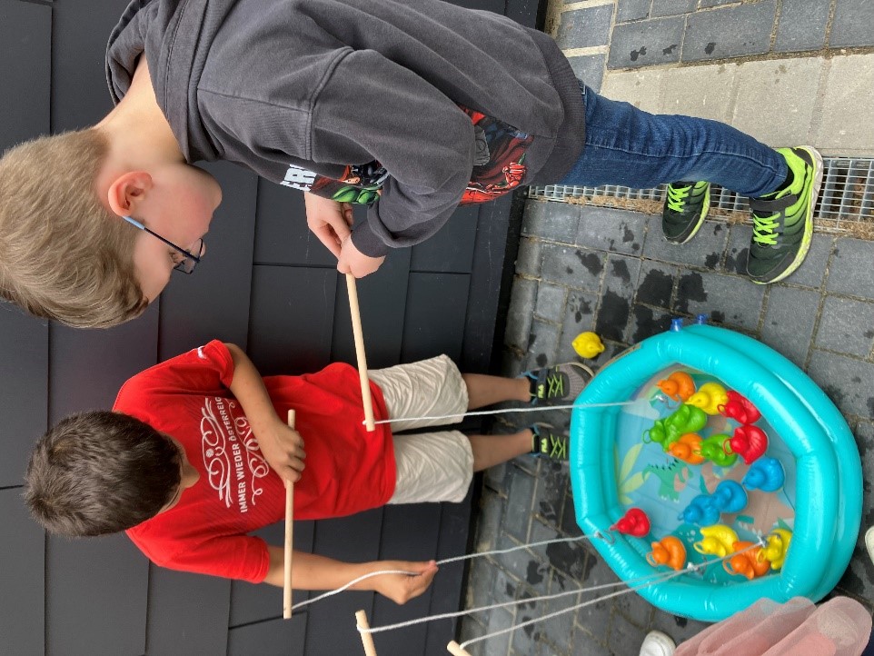 Mit diesem Lied läutete der Chor der 3. Klassen unser Schulfest am 5. Juni ein. Danach konnten wir gemeinsam einen bunten und abwechslungsreichen Nachmittag verbringen. Alle Pädagogischen MitarbeiterInnen und Lehrkräfte hatten etwas für das Fest vorbereitet. Die Angebote reichten vom Basteln eines Kreisels über Sitzfußball, Angeln, Glitzertatoos, Zöpfe flechten bis hin zu beliebten Klassikern wie Sackhüpfen oder Dosenhüpfen. Wir freuen uns, dass so viele Kinder und Eltern diesen Nachmittag mit uns verbracht und gefeiert haben. An dieser Stelle danken wir noch einmal allen Eltern, die viele Speisen zum Buffet beigesteuert haben. Herzlichen Dank dafür!