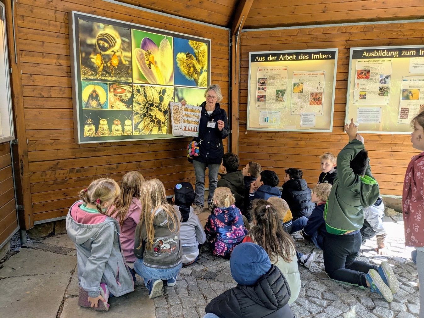 Primäre hatte in diesem Schuljahr das Thema „Bienen“ im Sachunterricht der 1, Klassen. Voller Elan stürzten sich die Kinder in die Erforschung der so wertvollen Insekten. Die Kinder lernten die Körperteile kennen, sie hörten über die Mitglieder im Bienenvolk und ihre Aufgaben, beobachteten die Entwicklung der Bienen vom Ei zur fertigen Biene und vieles mehr. Dazu wurden liebevoll Lapbooks gestaltet.