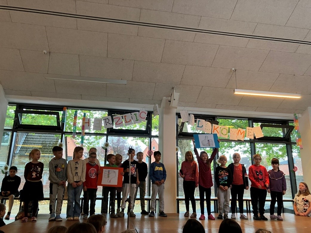 Die 4. Klassen hatten sich in einem Projekt mit dem Thema „Mein Körper gehört mir“ auseinandergesetzt. Das passende Lied wurde von den Schülerinnen und Schülern der Klasse 4c mit visueller Unterstützung in Szene gesetzt.