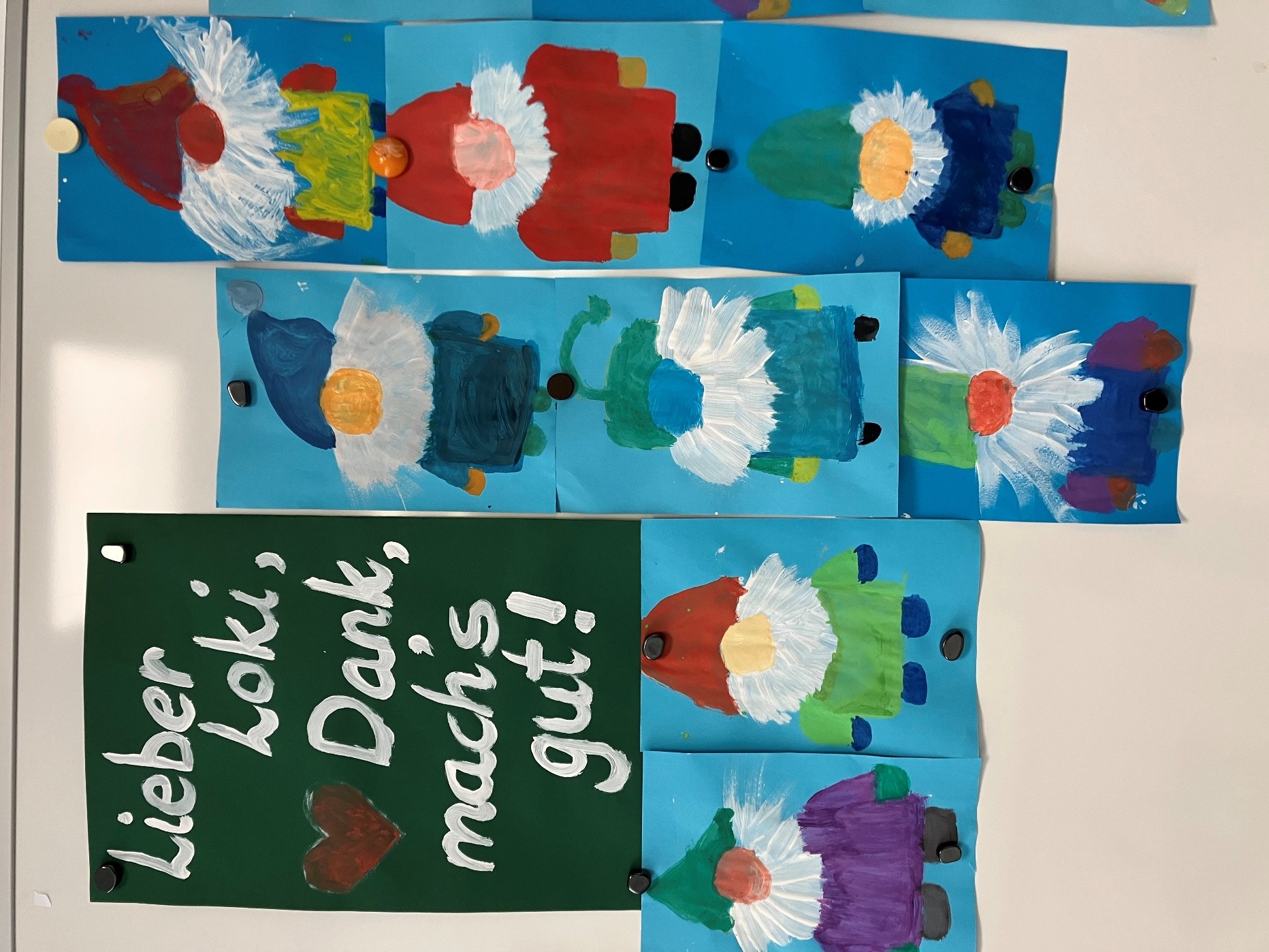Unser Weihnachtswichtel „Loki“ hat sich leider wieder aus dem Staub gemacht. Er ist nach Weihnachten wieder ausgezogen, kommt aber hoffentlich im nächsten Jahr wieder. Die Klasse 2b bedankt sich auf ihre Art.