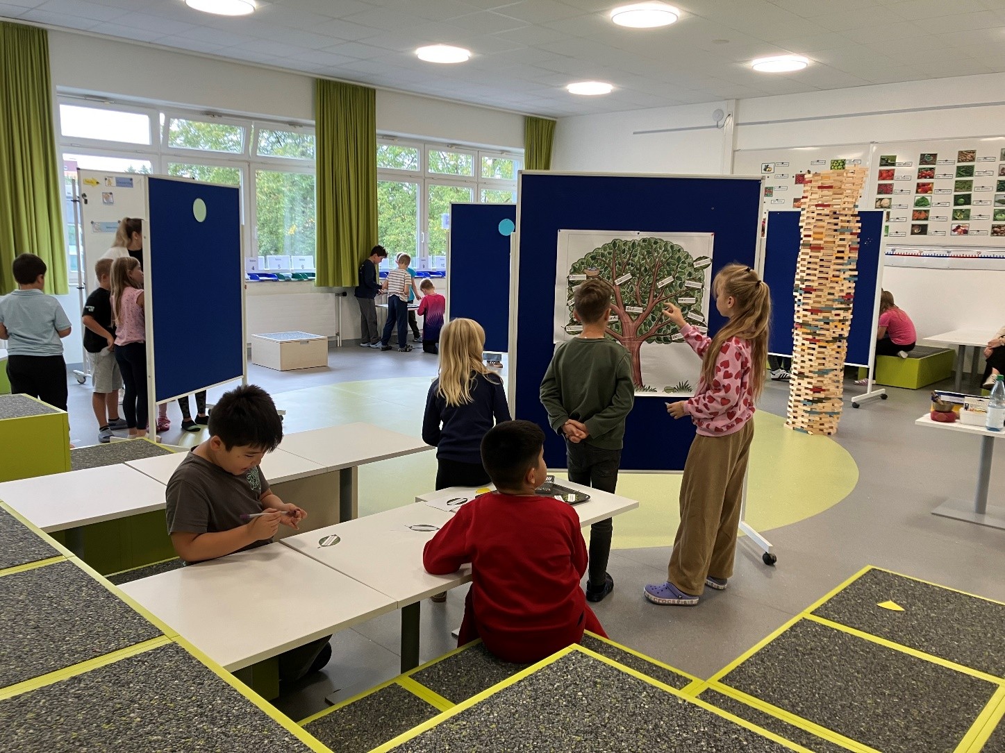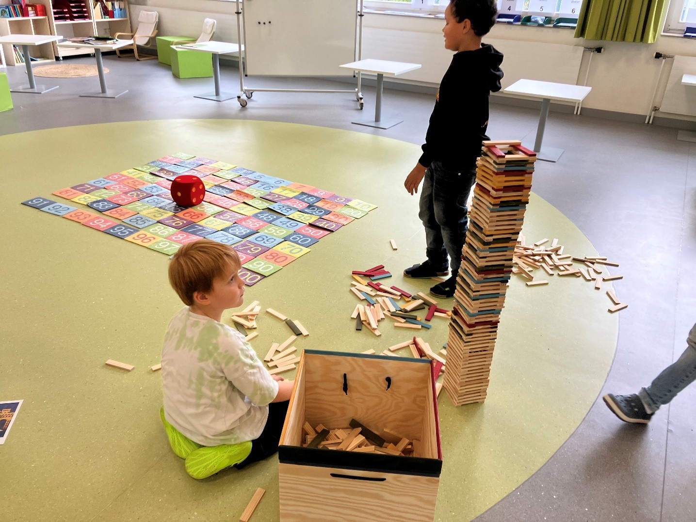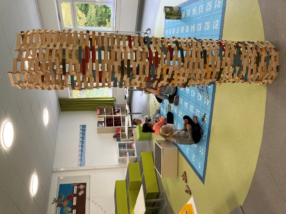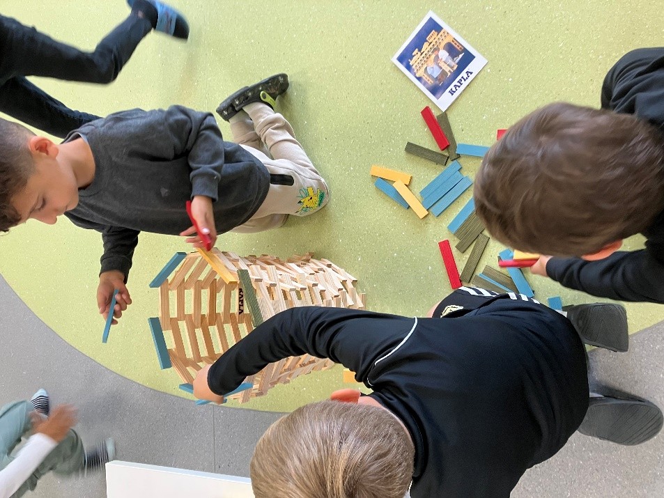 Mit den neu angeschafften Kapla-Steinen lassen sich unzählige Strukturen wie Türme, Brücken, Tore und Tiere erschaffen. Damit werden das räumliche Denken und die Koordination geschult. Kunstwerke und fantasievolle Bauten sind das Ergebnis. Toll!