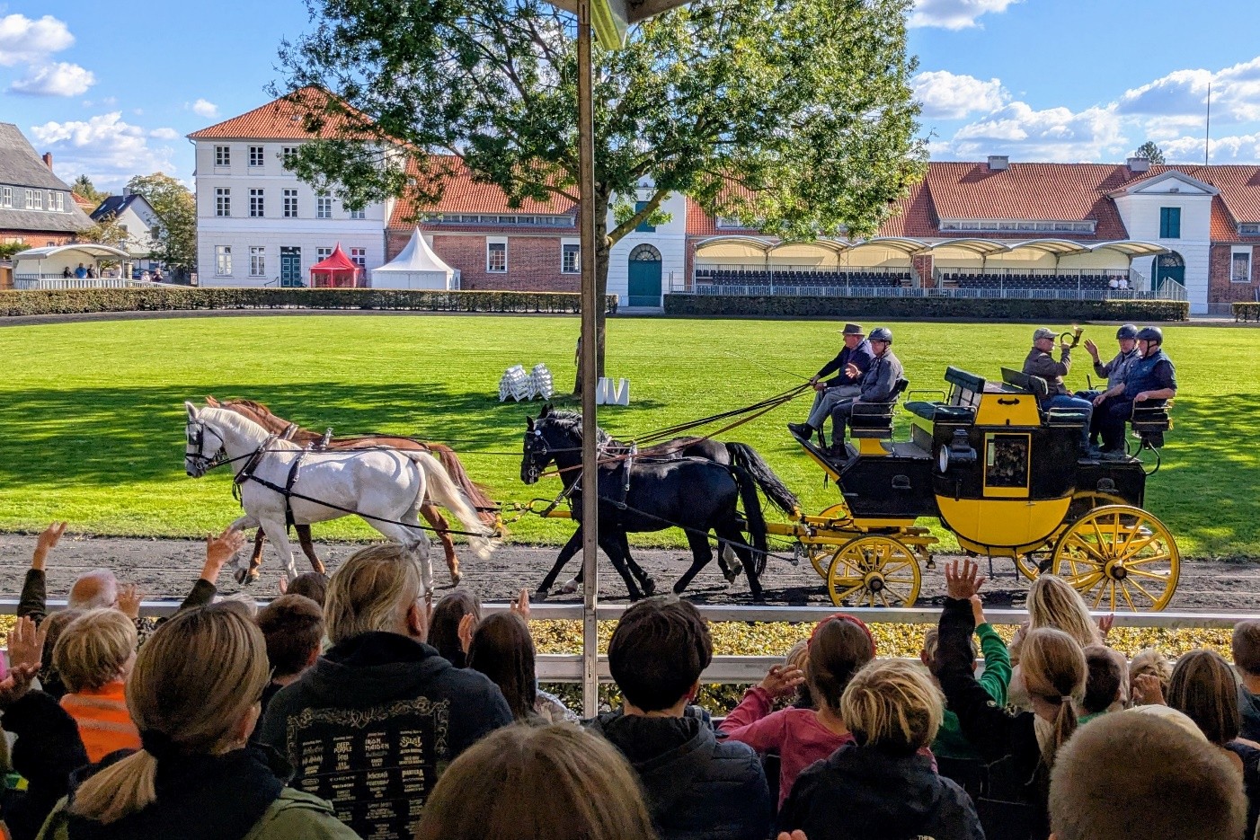 Bei strahlendem Herbstwetter folgten am 30. September 2025 viele Kinder unserer Schule der Einladung des Celler Landgestütes zur „Kinder-Hengst-Parade“. Begeisterte Kinder mit strahlenden Augen bejubelten die bezaubernden Auftritte von Pferden mit und ohne Reiter oder auch Gespanne mit Kutschen. Moderiert von Gestütsleiter Dr. Brockmann lernten die Kinder auch das leise Jubeln und die Laola-Welle. Zum Abschluss war sogar der Besuch in den Stallungen erlaubt.