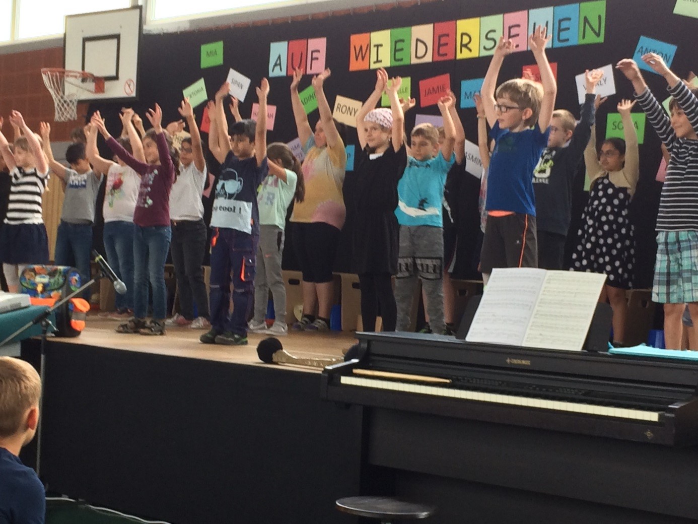 Was für eine schöne Abschiedsfeier, die die 4. Klassen unterstützt durch die Klassen 2b und 3b sowie der Flöten-AG uns geboten haben. Wir sind sehr stolz darauf, dass an unserer Grundschule die Verabschiedung der Viertklässler in einem feierlichen Rahmen stattfindet, an der auch Eltern, Großeltern und weitere Verwandte und Gäste teilnehmen können.