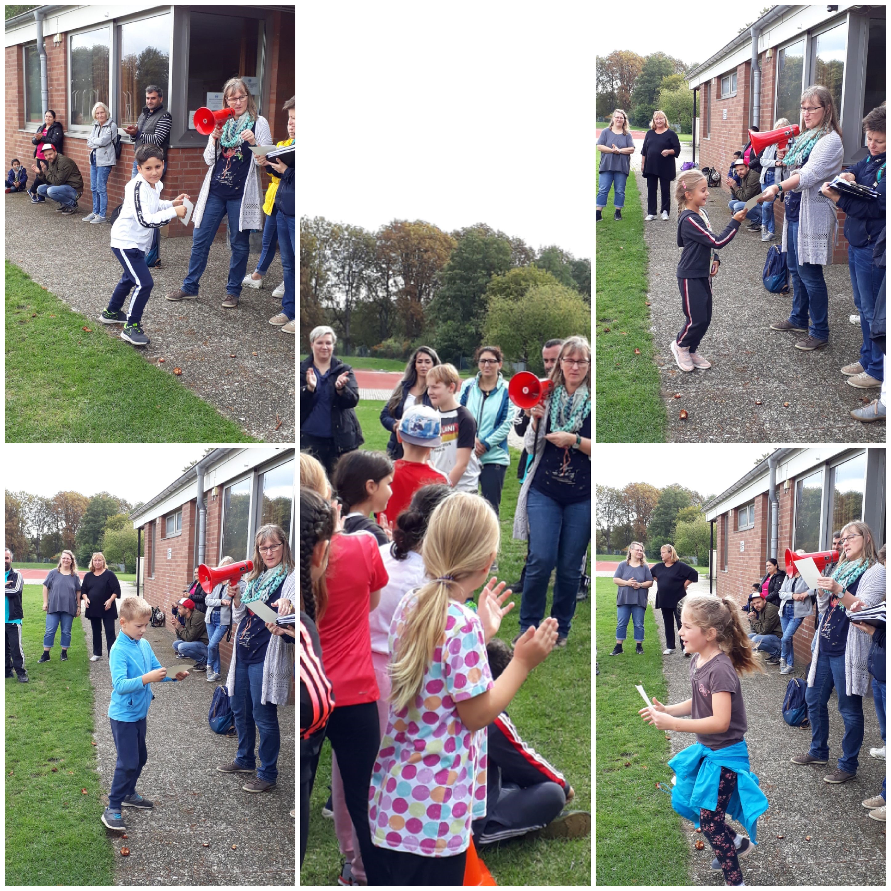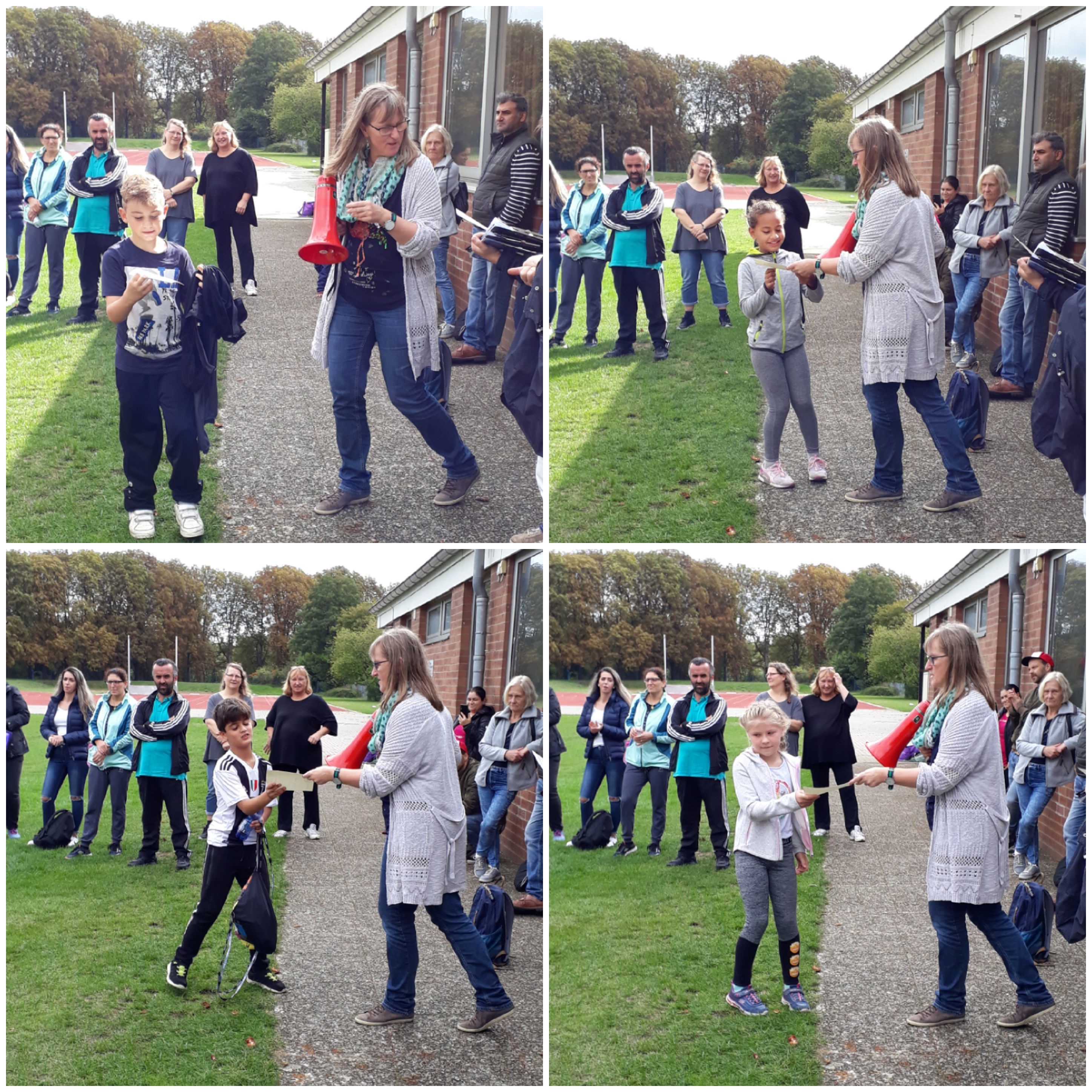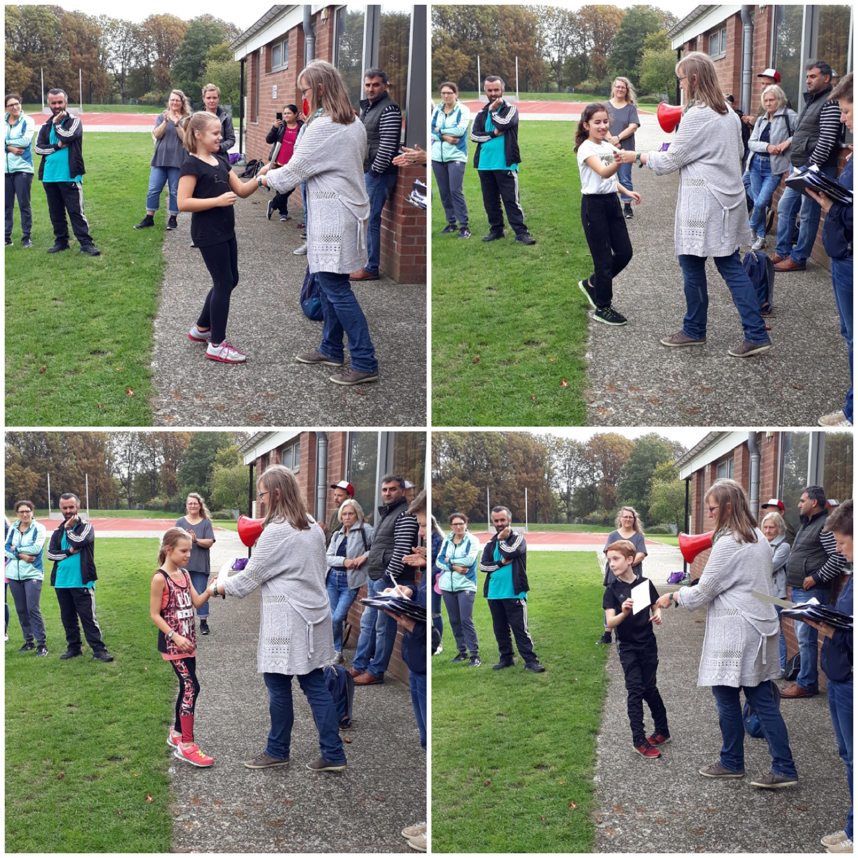 Hochmotiviert und mit viel Spaß durchliefen alle die Disziplinen `Laufen`, `Springen` und `Werfen` und sammelten eifrig Punkte für ihre Urkunden. Angefeuert wurden die Schülerinnen und Schüler durch die zahlreichen helfenden Eltern, die Lehrkräfte, die Pädagogischen Mitarbeiterinnen und einer pensionierten Lehrkraft.