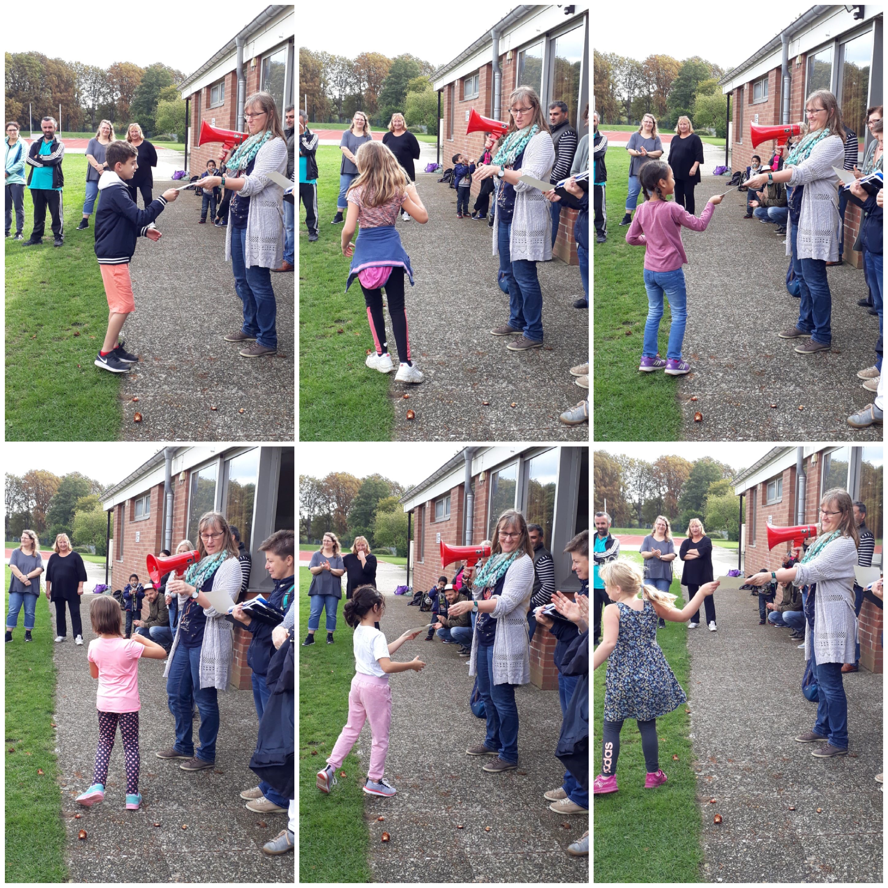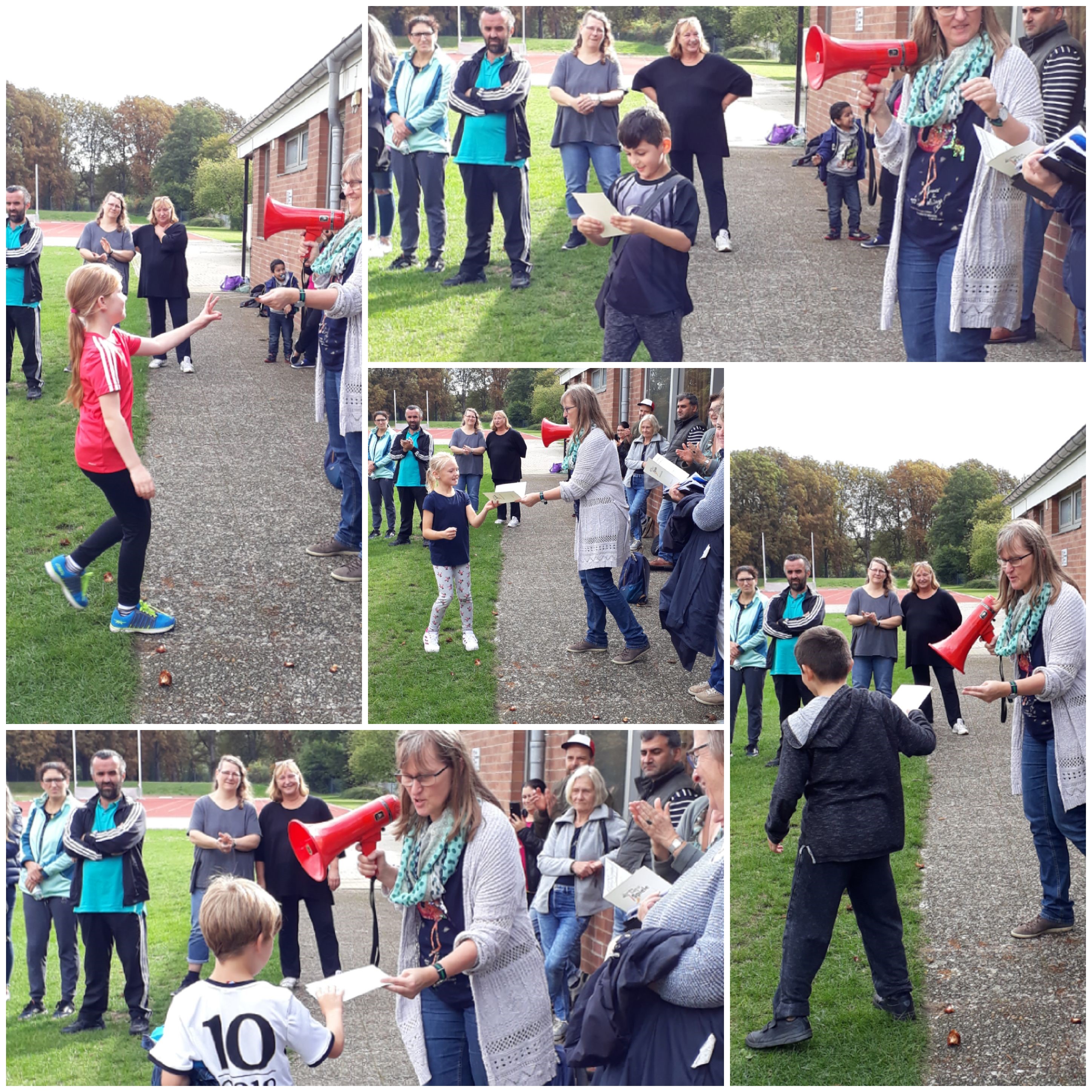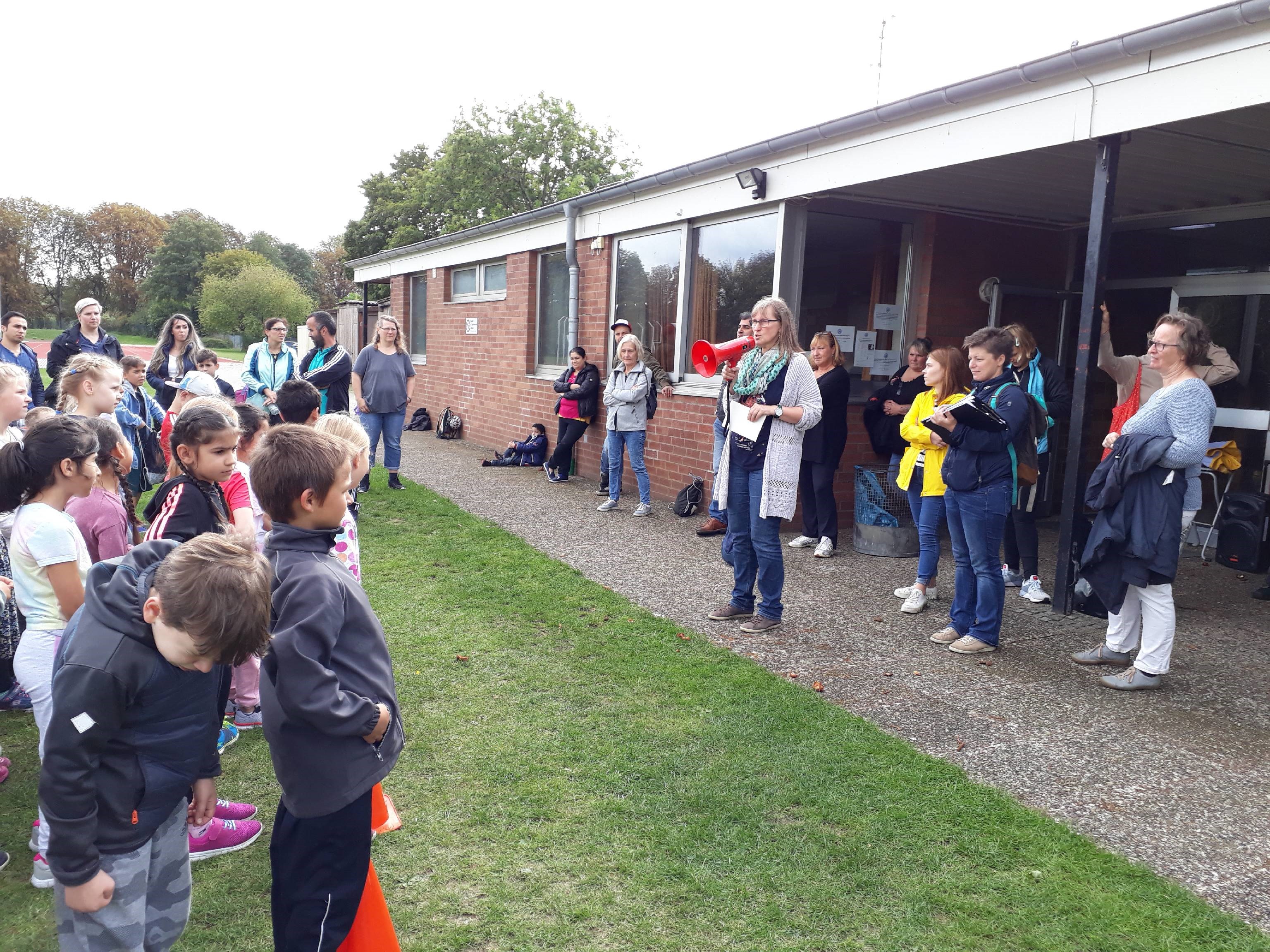 Hochmotiviert und mit viel Spaß durchliefen alle die Disziplinen `Laufen`, `Springen` und `Werfen` und sammelten eifrig Punkte für ihre Urkunden. Angefeuert wurden die Schülerinnen und Schüler durch die zahlreichen helfenden Eltern, die Lehrkräfte, die Pädagogischen Mitarbeiterinnen und einer pensionierten Lehrkraft.