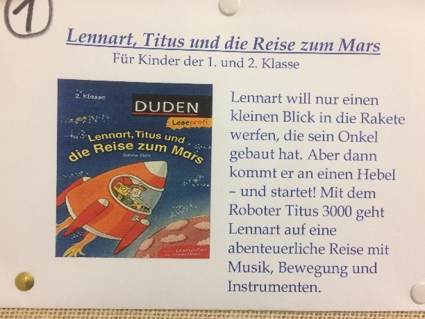 Im Vorfeld wählten 9 Lehrerinnen je ein Buch aus, das an diesem Tag vorgelesen wurde und zu dem Motto „Sport und Bewegung“ passte.