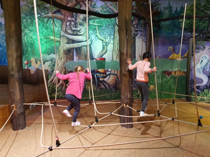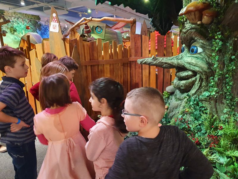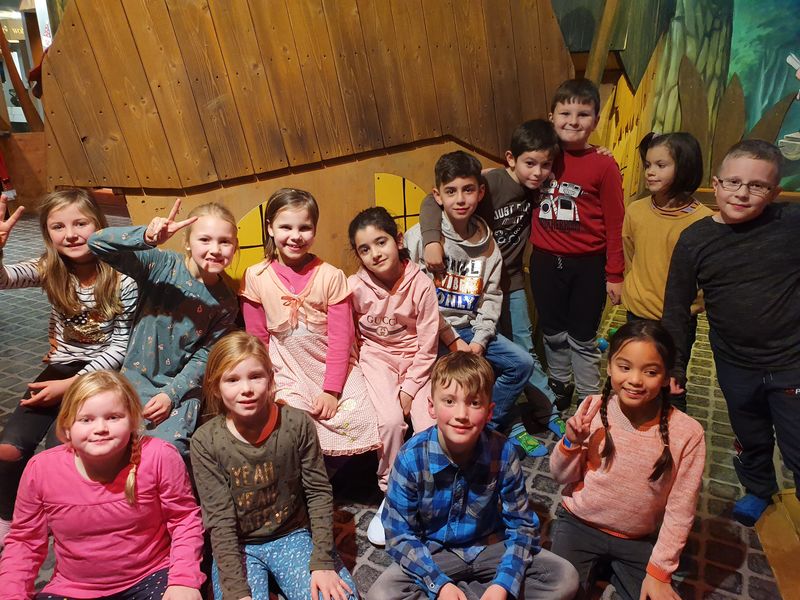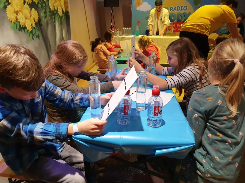 Am 6.12.2019 war es soweit: Um 18.30 h trafen wir uns im Möbelhaus und wurden freundlich vom Radio-Teddy-Team begrüßt. Zu Beginn konnten wir uns erst einmal richtig austoben im Kinderparadies und stärkten uns danach mit einer ordentlichen Portion Nudeln oder einem Hot Dog. Nach einer ausführlichen Einführung über den Ablauf des Abends startete unsere Klasse mit einer Experimentierrunde: Zunächst erhielt jeder eine mit Wasser gefüllte Flasche sowie ein Papier mit Pfeilen. Schnell konnten wir erkennen, dass die Pfeile hinter der Flasche ihre Richtung wechselten und das sogar mit Händen, Menschen oder anderen Gegenständen funktionierte. Das zweite Experiment war eine selbstgebaute Luftballonmaschine und Experiment 3 ließ uns über einen überschäumenden Vulkan staunen.