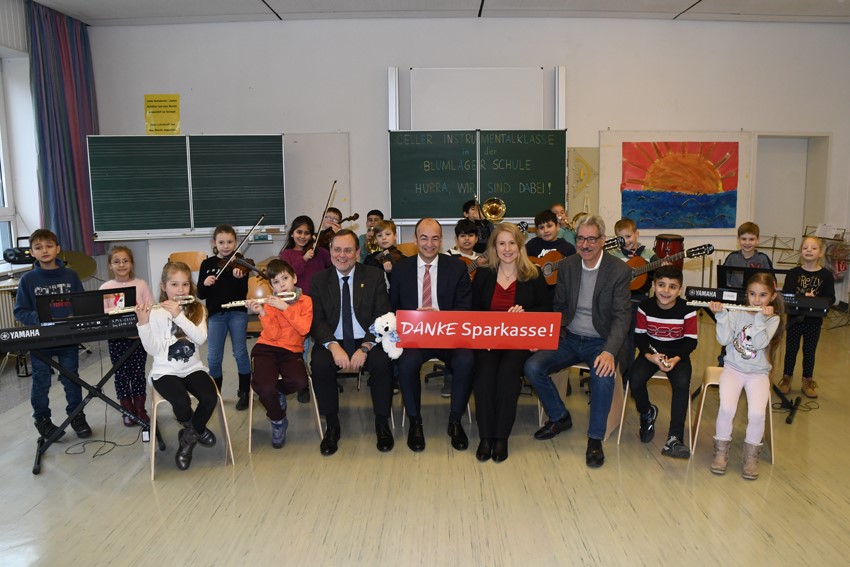 Für ein solches Projekt braucht es viel Engagement, vor allem aber auch eine finanzielle Unterstützung, damit es gelingen kann, heißt es aus der Kreisverwaltung. Mit einer großen Spende von 58.000 Euro hat die Sparkasse Celle-Gifhorn-Wolfsburg über ihre Regionalstiftung die Anschaffung der notwendigen Instrumente ermöglicht. „Wir unterstützen gern dieses großartige Projekt, das jedem Kind die Möglichkeit gibt, sich musikalisch zu erproben und unterschiedliche Instrumente zu testen. Musik fördert die Entwicklung und das soziale Miteinander unserer Kinder. Das ist sehr gut investiertes Geld", begründete Stefan Gratzfeld, Vorstandsvorsitzender der Sparkasse Celle-Gifhorn-Wolfsburg, die großzügige Spende bei der Übergabe des Schecks in der Blumläger Schule.