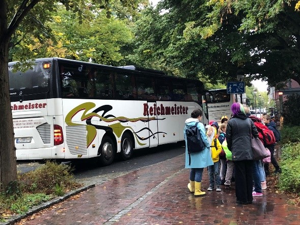 Pünktlich fuhren 5 Reisebusse vor unser Schulgebäude. Zügig gelang das Einsteigen und fröhlich schnatternd fuhren wir mit den Bussen in Kolonne unserem Ziel entgegen. Und was war das für ein wundervolles Erlebnis für alle! Gesang schon im Bus, gemeinsame Ankunft, Frühstück bei leichtem Regen und dann Tiere, Spielgeräte, Imbiss und Toilettengänge mit kleinen Handicaps wegen Buddelhosen und Gepäck. Die Stunden vergingen wie im Fluge.