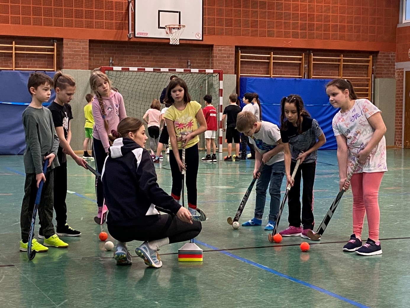 Wie auch schon vor wenigen Wochen beim Handball, konnten die Kinder nun in die Sportart Hockey hinein schnuppern. Das Kennenlernen der Schläger und Bälle, sowie erster Techniken machte viel Spaß und Lust auf mehr. Der Verein freut sich über sportbegeisterten Nachwuchs, vielleicht ja auch erstmal zum Ausprobieren in unserer Hockey AG im Ganztag.