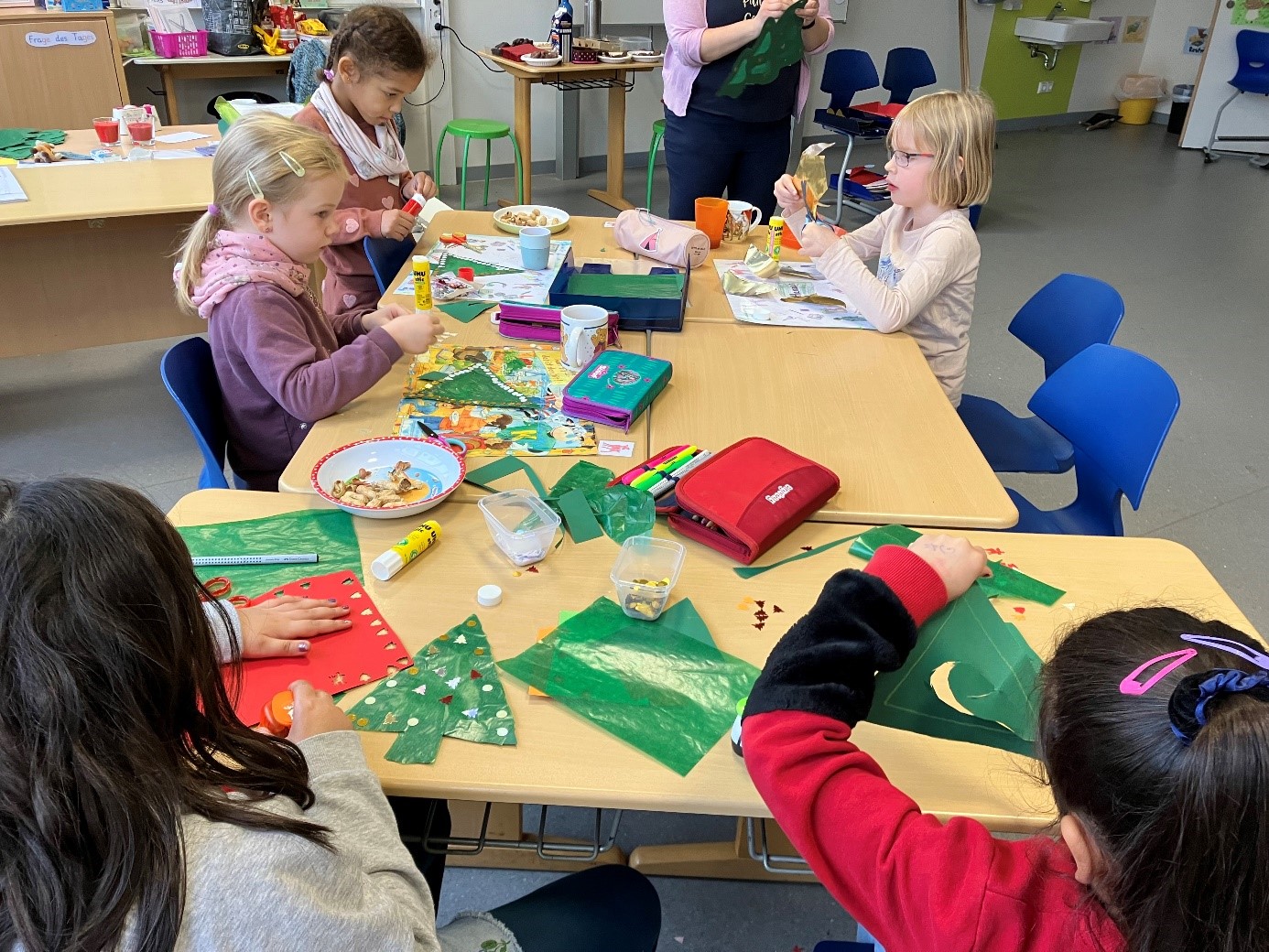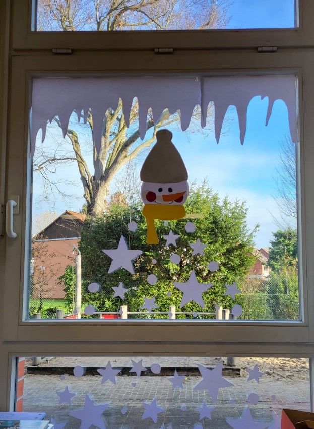 Pünktlich zur Weihnachtszeit präsentiert sich unsere Schule weihnachtlich geschmückt. In allen 12 Klassen wurde fleißig gebastelt und gemalt. Bunte Fensterbilder, Sterne, Tannenbäume, Engel und Schneelandschaften zieren nun die Fenster und Flure. Verzierte Kerzengläser und Teelichter sorgen morgens für eine besinnliche Stimmung in den Klassen. Jetzt fehlt nur noch draußen der Schnee.