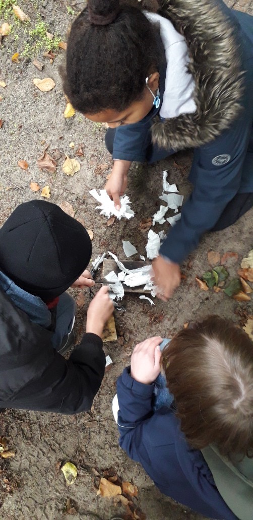 hren für den Wald durch den Menschen aufzuklären und wie man zum Schutz beitragen kann. Dazu gehören im Rahmen des Klimawandels vor allem Waldbrände. Um zu verstehen, wie schnell ein Feuer entstehen kann, durften die Kinder selbstständig mit Feuerstahl kleine Feuer entzünden. Was für ein spannendes Erlebnis. Anschließend wurde darüber aufgeklärt, wie man ein solches Feuer löscht und wie man sich im Wald verhält, um es zu verhindern. Außerdem ging es jenseits der Wege in den Wald und wir erfuhren etwas über den Aufbau der Bodenschichten und den Nutzen der Bäume. Die Früchte, Erde, Moos und vieles mehr wurde genauer befühlt und einiges was die Kinder im Unterricht theoretisch gelernt hatten, konnten sie nun im Laufe der 2,5 Stunden fühlend und handelnd wiederentdecken.