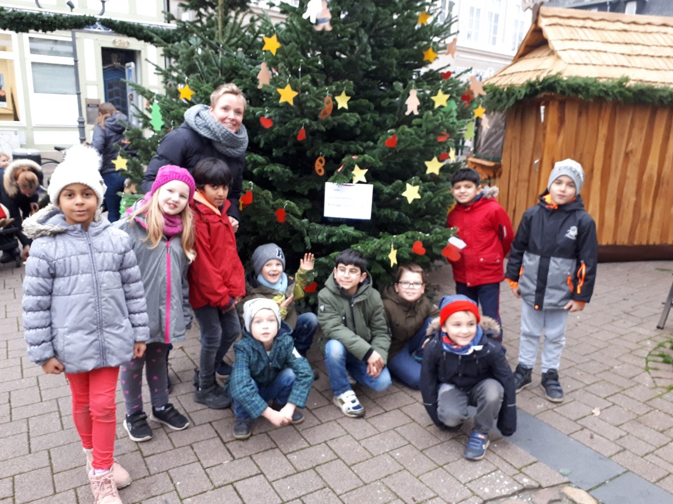 Auch in diesem Jahr haben Gruppen des Ganztages an der Baumschmück-Aktion der Celler Tourismus GmbH auf dem Weihnachtsmarkt teilgenommen.