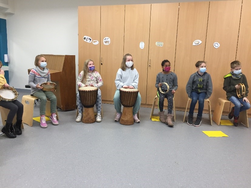Auch die GS Blumlage / Altstadt wurde ausgewählt und von Experten historischer Musik besucht. Mitglieder des hannoverschen Barockorchesters „la festa musicale“ nahmen unsere Drittklässler mit auf eine Fantasiereise durch verschiedene Räume des Schlosses Wolfenbüttel, in dem Praetorius als Hofkapellmeister angestellt war. Es wurde gesungen, getanzt und musiziert und das Erarbeitete bei einem Abschlusskonzert vorgestellt.