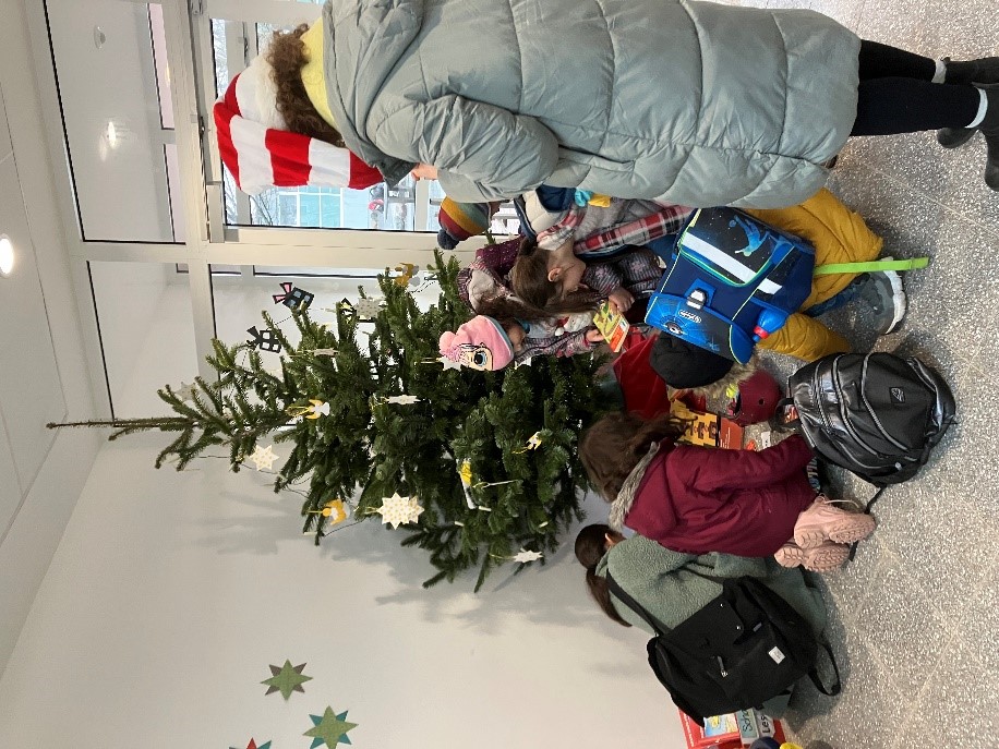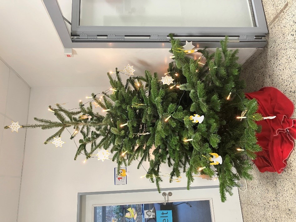 Pünktlich zum Beginn der Adventszeit stand der Weihnachtsbaum wie gewohnt im Erdgeschoss unserer Schule. Nun leuchtet er für uns jeden Tag.