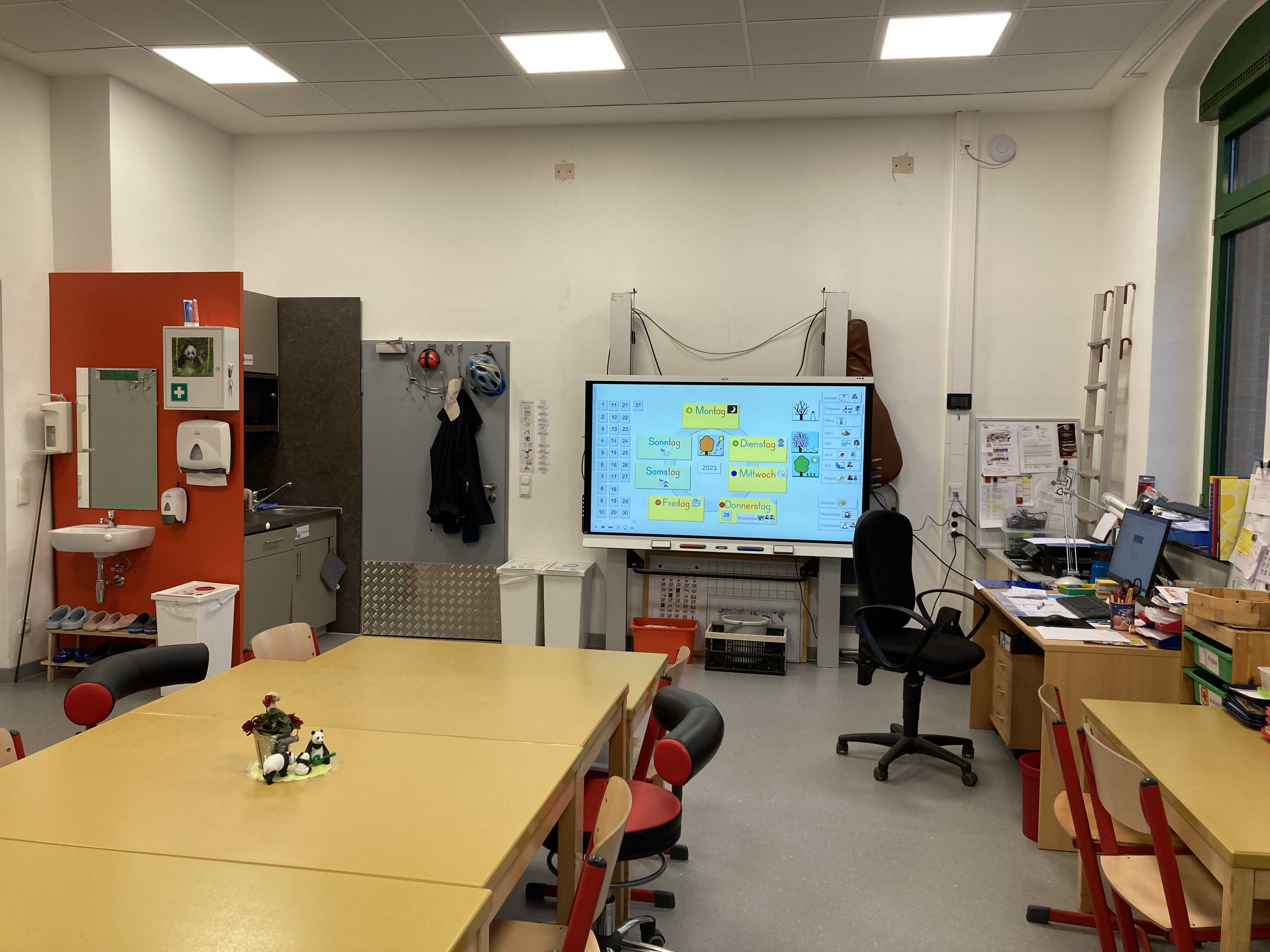 Seit diesem Schuljahr sind wir nun wieder in unseren alten Klassenraum mit zurzeit sechs Kindern gezogen. Unsere Pandaklasse ist eine jahrgangs-übergreifende Sekundarstufe 1 mit aktuell sechs Schülerinnen und Schülern im Alter zwischen 9 und 13 Jahren (in den Klassenstufen 4, 6 und 7 ).
