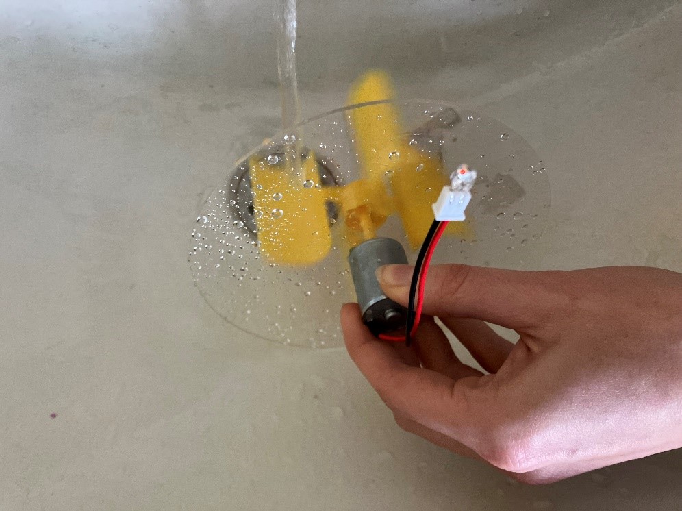 Ob das Wasser noch Seifenrückstände hatte oder ob es komplett gefiltert war, wurde mithilfe einer Büroklammer getestet. Schwimmt diese auf der Wasseroberfläche, ist das Wasser ohne Seife; ist sie untergegangen, befindet sich noch Seife darin.
