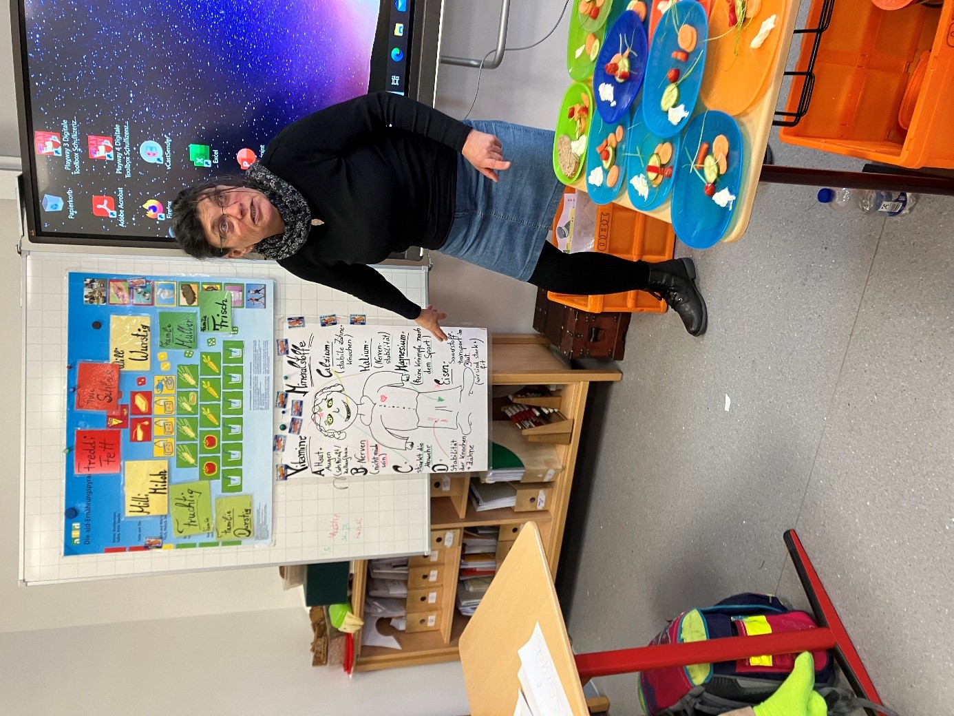 Nachdem sich der Klassenraum in eine Küche verwandelt hat, lernen die Kinder viel über eine ausgewogene Ernährung und den Umgang mit verschiedenen Küchengeräten. Sie lernen Lebensmittel mit allen Sinnen wahrzunehmen, zuzubereiten und zu genießen.