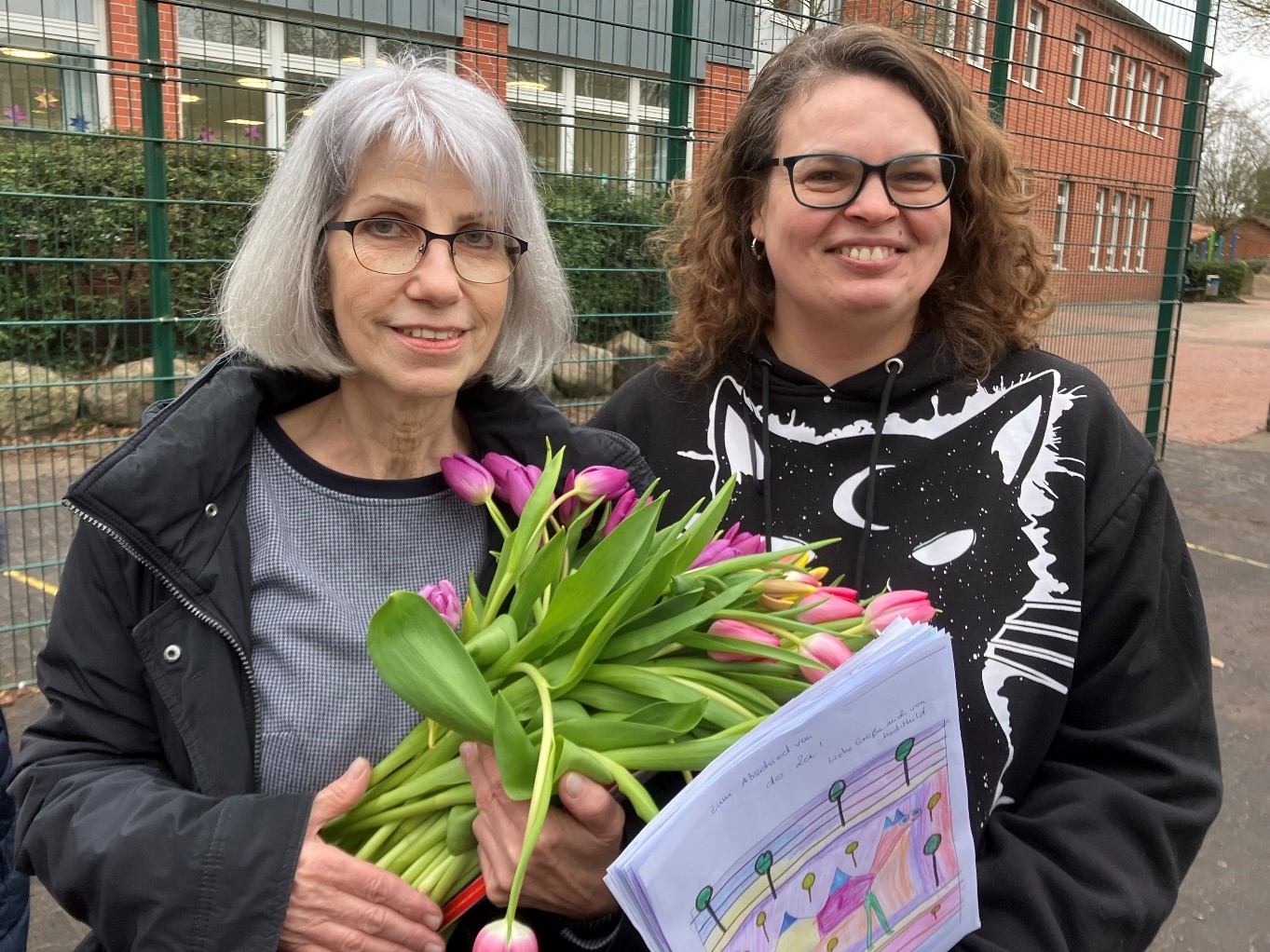 Ein ganz besonderer Abschied also, der entsprechend gefeiert wurde. Alle Schülerinnen und Schüler haben etwas dazu beigetragen und ein wahres Blumenmeer durfte Frau Siewert bei ihrer Verabschiedung mit nach Hause nehmen.