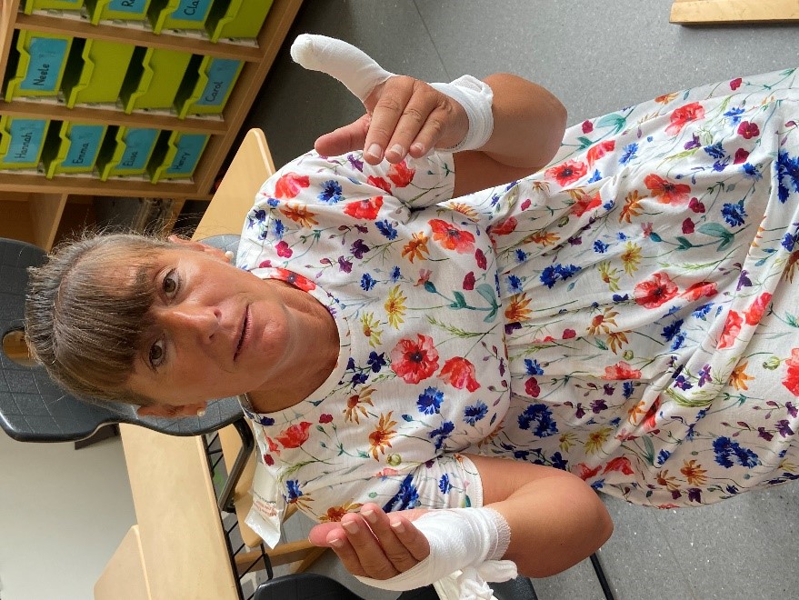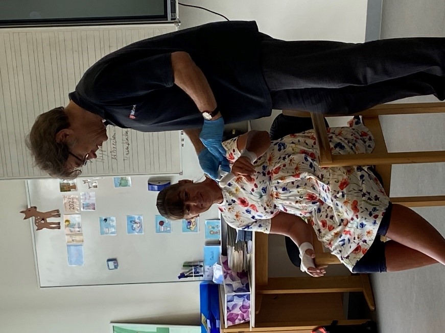 Da im Notfall keine Zeit zum Üben ist, wurde das korrekte Anbringen von Verbänden geübt. Dabei kam der Spaß am Lernen nicht zu kurz.