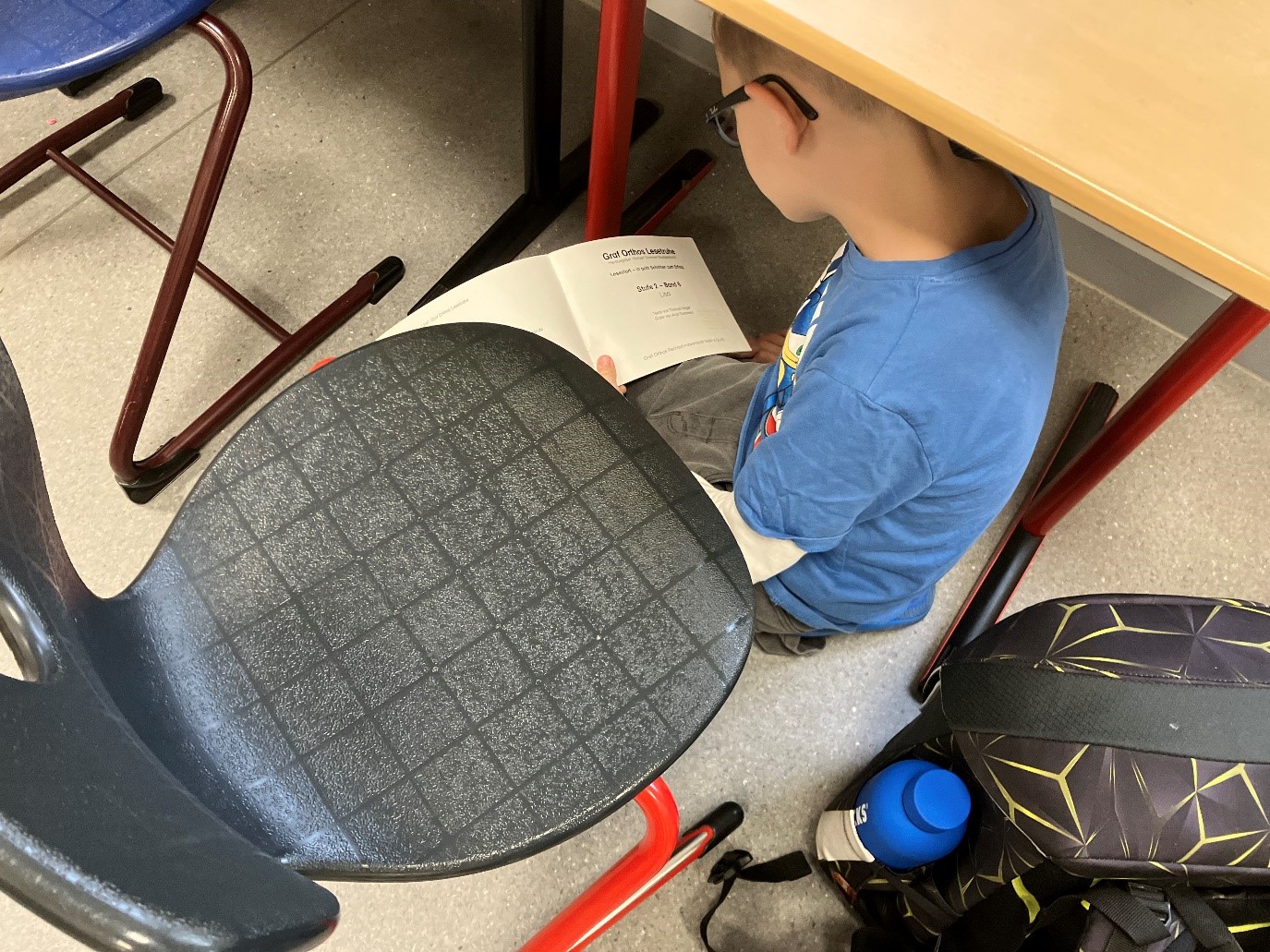 Wenn die Schülerinnen und Schüler unserer 2. Klassen zuerst unter dem Tisch sitzen, später auf dem Stuhl und zum Schluss sogar auf dem Tisch stehen, dann ist Lesestunde angesagt. Ob spielerisch, mit motivierenden Bildkarten, dem IPad, alleine oder zu zweit, das Lesen steht im Vordergrund und die Kinder haben viel Spaß daran.