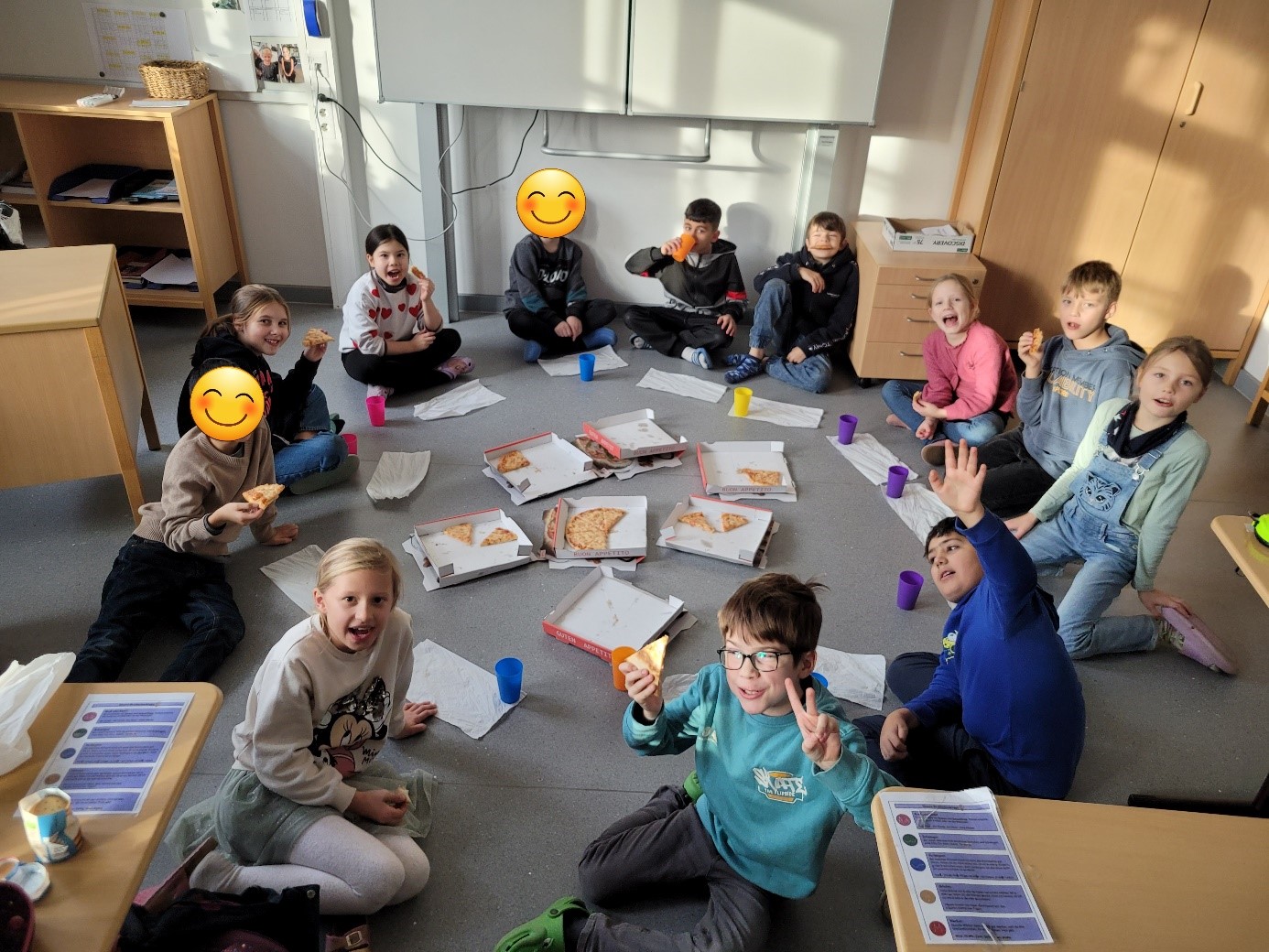 Als Belohnung gab es eine kleine Süßigkeit von der Stadt Celle. Den Nachmittag haben wir dann mit einem gemeinsamen Pizzaessen im Klassenraum ausklingen lassen.