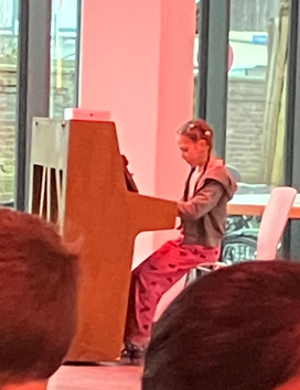 Unsere Schülerin Mila, die im regionalen Landeswettbewerb „Jugend musiziert“ den 1. Platz gemacht hatte, brillierte am Klavier.