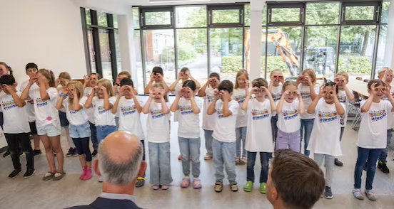 Am Freitag, 23. August 2024, wurde unsere neue Mensa offiziell von Oberbürgermeister Dr. Nigge sowie Vertreterinnen und Vertretern der am Bau beteiligten Firmen, der Stadtverwaltung und Schülerinnen und Schülern der Chor-AG der 3. Klassen offiziell eingeweiht.