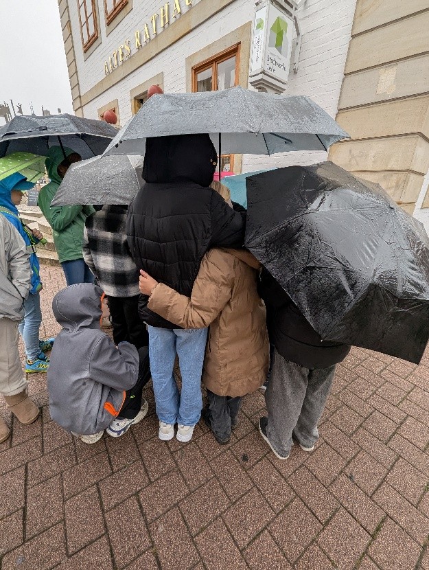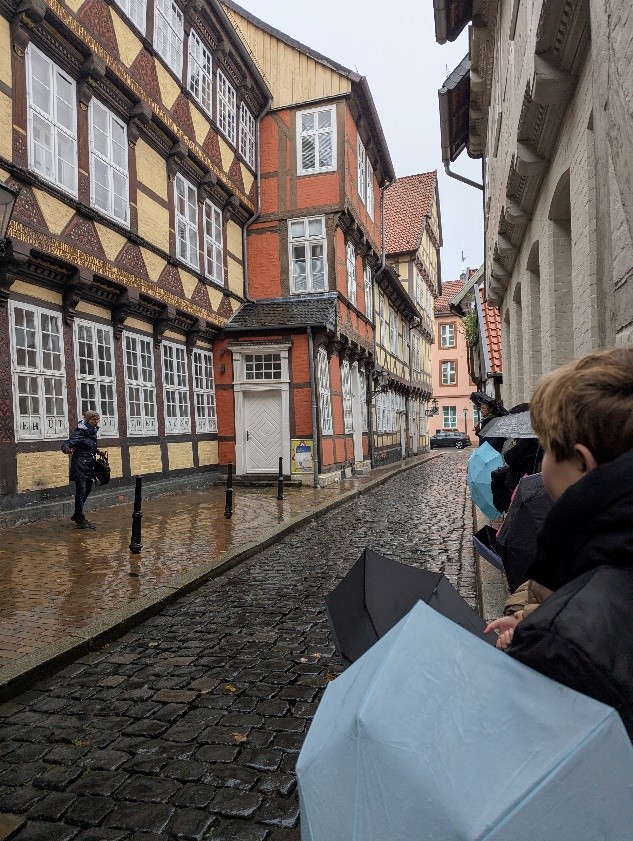 Unsere 4. Klassen machten sich auf eine Entdeckungsreise durch das mittelalterliche Celle. Von der Stadtführerin gab es Informationen zur Entstehung und Entwicklung der Stadt, zur Fachwerkbauweise und den Besonderheiten der Fachwerkhäuser, zum Schloss, dem Alten Rathaus und der malerischen Kalandgasse mit der alten Lateinschule. Schade nur, dass es geregnet hat.