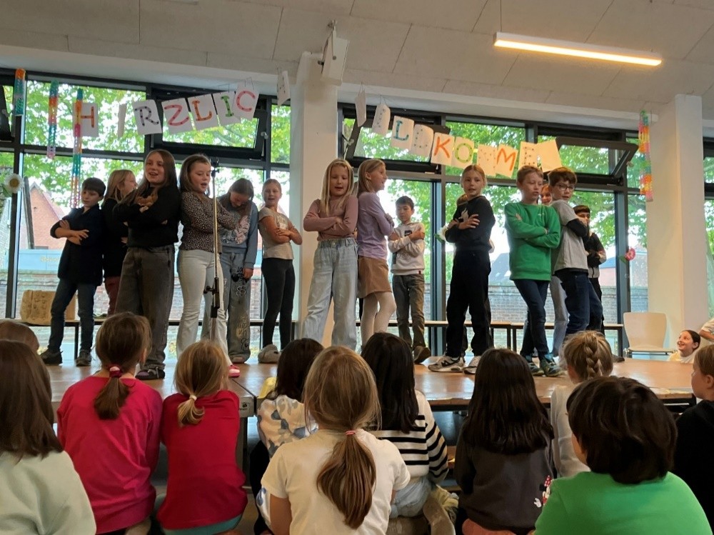 Die 4. Klassen hatten sich in einem Projekt mit dem Thema „Mein Körper gehört mir“ auseinandergesetzt. Das passende Lied wurde von den Schülerinnen und Schülern der Klasse 4c mit visueller Unterstützung in Szene gesetzt.