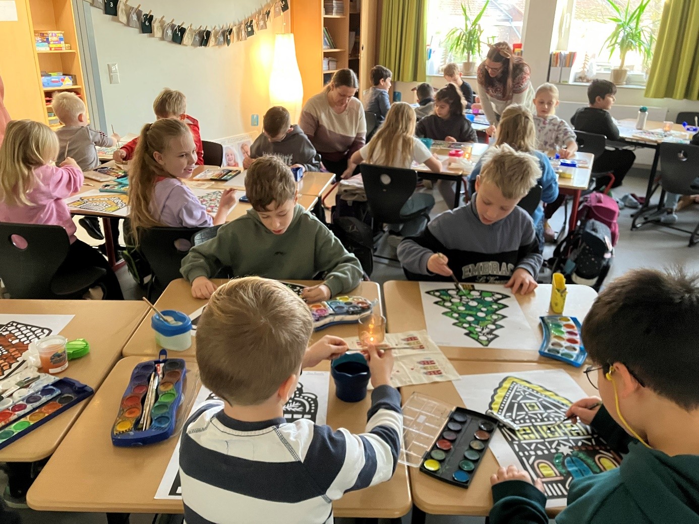 Am 27.11.2025 verwandelten sich unsere Klassenräume in Weihnachts-werkstätten. Alle Kinder bastelten unter Anleitung der Lehrkräfte oder Eltern weihnachtliche Dekorationen. Nun ist unser Schulgebäude sehr schön weihnachtlich geschmückt.