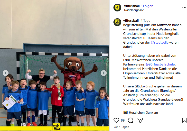 Am Mittwoch, d. 28. Januar 2026, fand das alljährliche Fußballturnier „Westerceller Grundschulcup“ statt. Bereits zum elften Mal trafen Schülerinnen und Schüler bei dem vom VfL Westercelle organisierten Turnier. In diesem Jahr nahmen 10 Grundschulen teil, die in zwei Gruppen die Vorrunde ausspielten. Während wir uns im ersten Spiel gegen die Kicker aus Wietzenbruch mit 0:3 geschlagen geben mussten und uns im zweiten Spiel ein 1:1 unentschieden gegen die GS Vorwerk erkämpften, konnten wir im dritten und vierten Spiel das Feld als Sieger verlassen. Gegen die Katholische Grundschule gewannen wir mit 2:0 und gegen die GS Klein-Hehlen mit 1:0. Nun war die Spannung während der Auswertung groß, um welchen Platz wir spielen würden. Die Freude und auch Überraschung war groß, als wir im Halbfinale standen. Zu diesem Zeitpunkt waren wir schon sehr stolz auf uns.