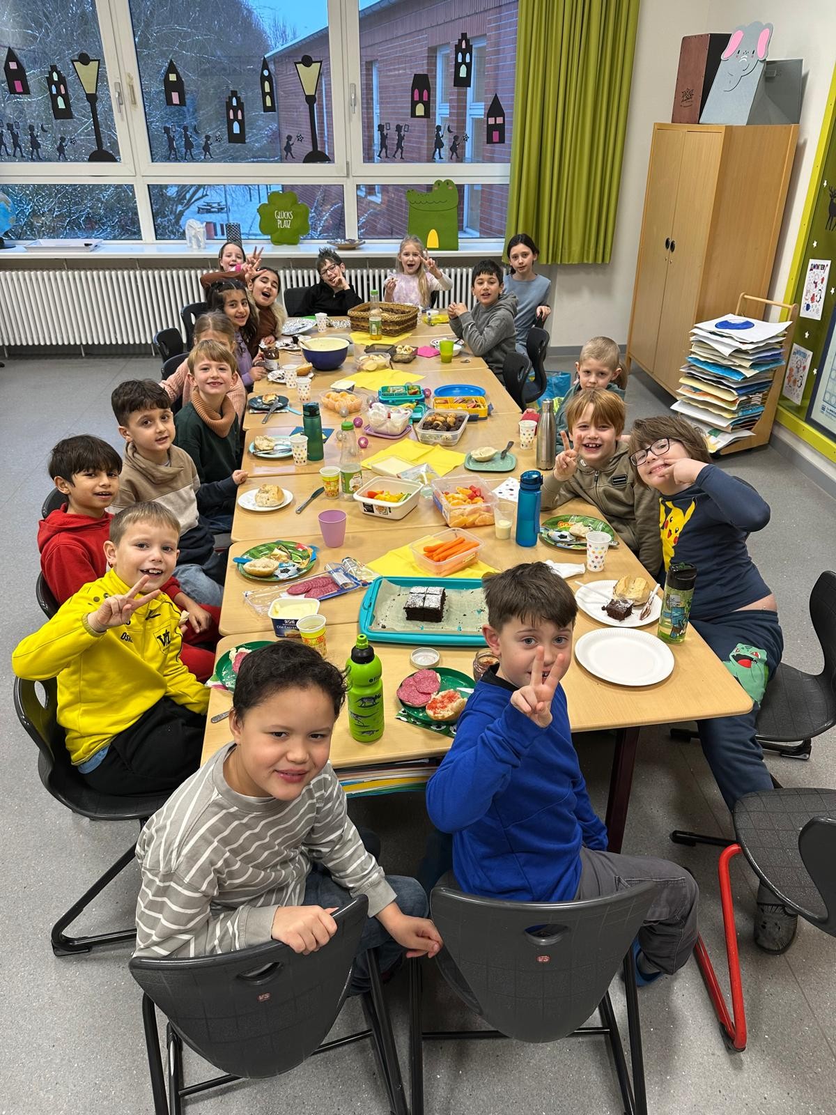 Klassenfrühstück am Zeugnistag ist bei den Kindern der Klasse 2c eine sehr beliebte Tradition. Ein großer Dank an die Eltern für die tollen Köstlichkeiten aus aller Welt.