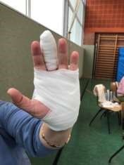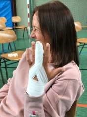 Da im Notfall keine Zeit zum Üben ist, wurde das korrekte Anbringen von Verbänden geübt. Dabei kam der Spaß am Lernen nicht zu kurz.